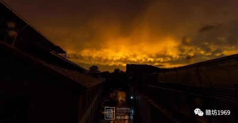 昨日雨后的赣州,在阳光的映射下,落霞披上金灿灿的新装,给赣州人展示了难得一见的大自然之美。美景不可多得,瞳画故事摄影工作室为赣坊1969文化创意产业园记录下了这华丽丽的一幕,请您屏息静看。
