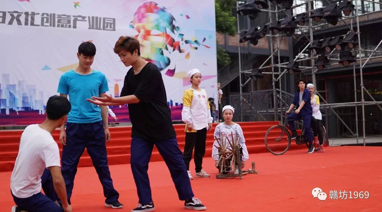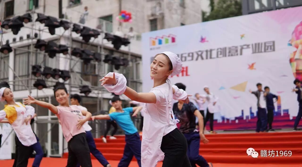 随后,舞台上呈现了一场精彩的舞蹈《城市印象》,演员们用富有张力的动作演绎了从赣纺到赣坊1969文化创意产业园的蜕变过程。舞蹈尾声,楼顶滑下六朵礼花,交由领导、嘉宾剪彩,完成了别具创意的剪彩仪式。