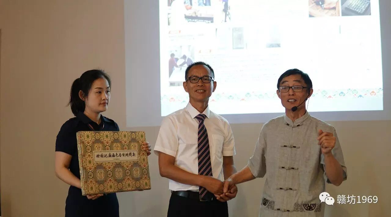 李江民先生将珍贵的西厢记图册赠送给赣州海邦总经理齐盛达