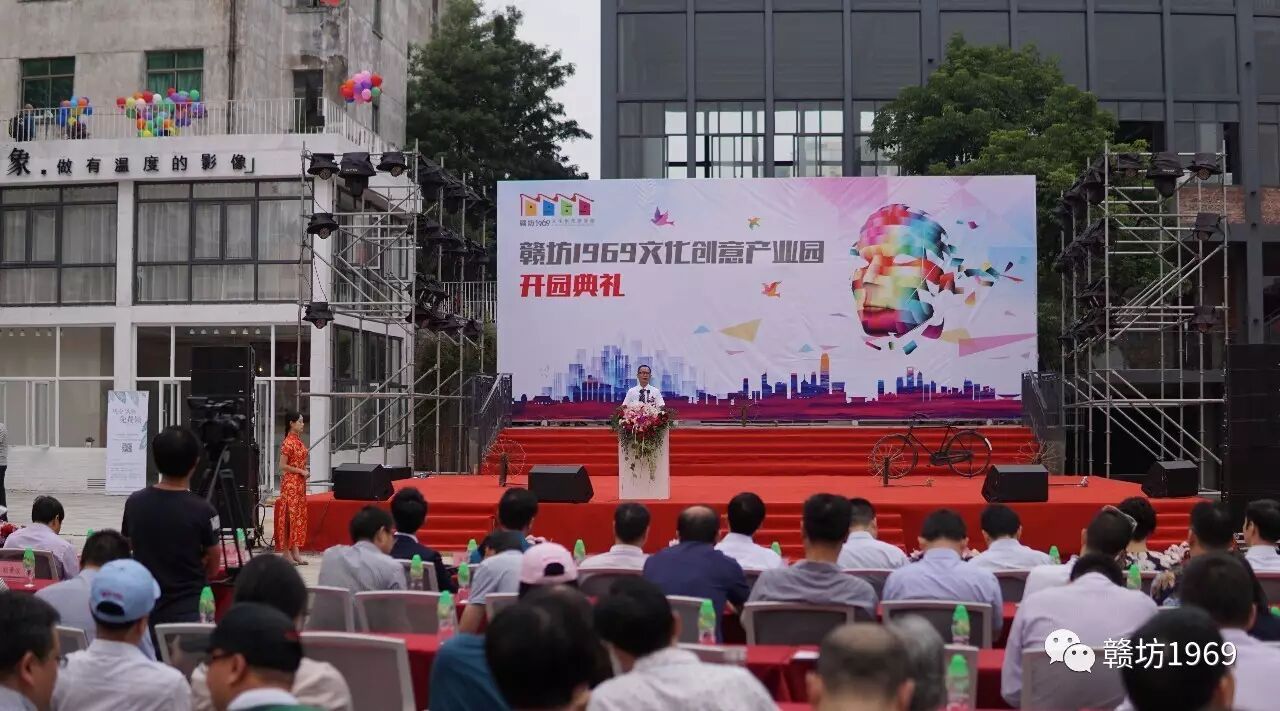 上午九点许,开园仪式正式开始,赣坊1969项目母公司康达集团执行董事王思进、特邀嘉宾国家一级作家张品成先生、赣坊1969项目运营商赣州海邦文化产业发展有限公司总经理齐盛达依次上台致辞,表达了对赣坊1969项目的美好期许。