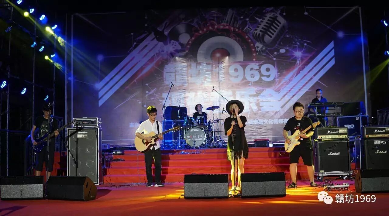 晚上六点半,地平线乐队、0797乐队、逃逸乐队、热风乐队、鼓时候乐队、林建涛乐队、着急乐队、灵云乐队八支乐队轮番上台,演出一直持续至晚上九点多,歌声响彻赣坊1969!Rock!