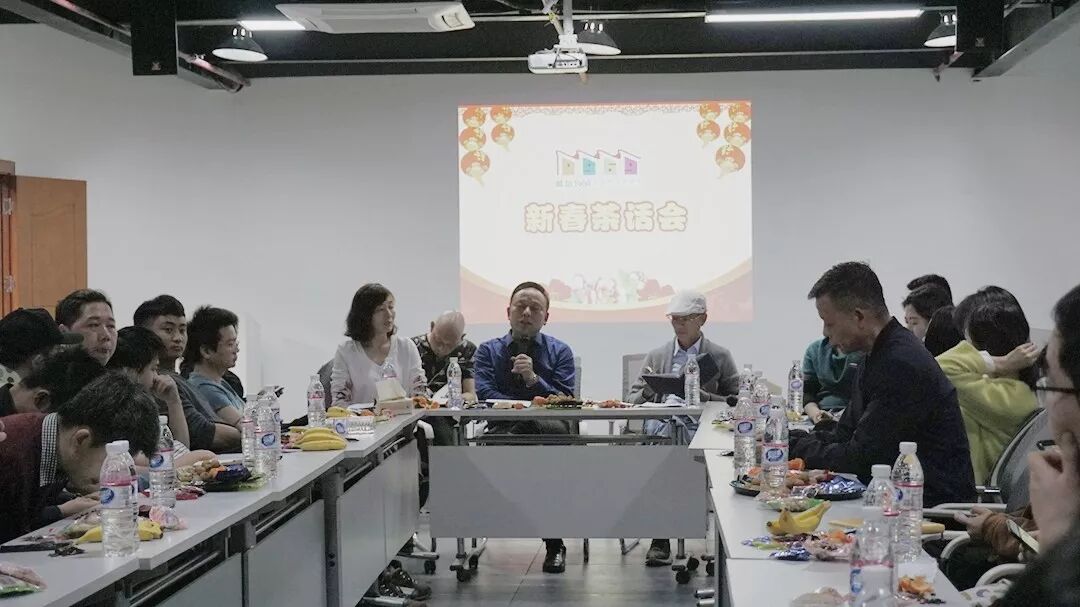 三点不到,园区工作人员已将点心茶水备好,园区的商家们也陆续到达。会议由赣坊1969青创公社负责人朋飞主持,他首先向大家介绍了会议议程,并回顾了2017年园区的主要工作。