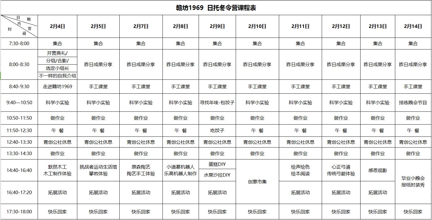 如果你正被这些问题所困扰,不如,把孩子送到赣坊1969 日托冬令营吧!父母只需按时接送孩子,这里有专业的老师每天为孩子们安排了丰富多彩的趣味手工、科学实验,寒假作业辅导等等课程,解放您的时间,让孩子渡过一个有意义的寒假!