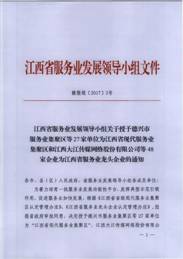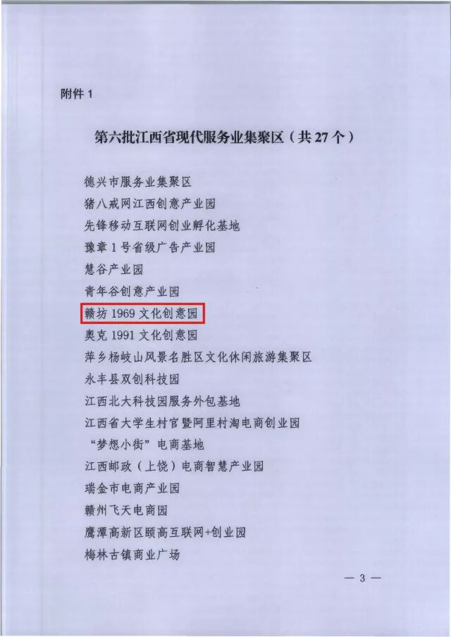 2017年12月26日,江西省服务发展改革委办公室发文,授予赣坊1969文化创意产业园为“第六批江西省现代服务聚集区”,具体请查阅批文: