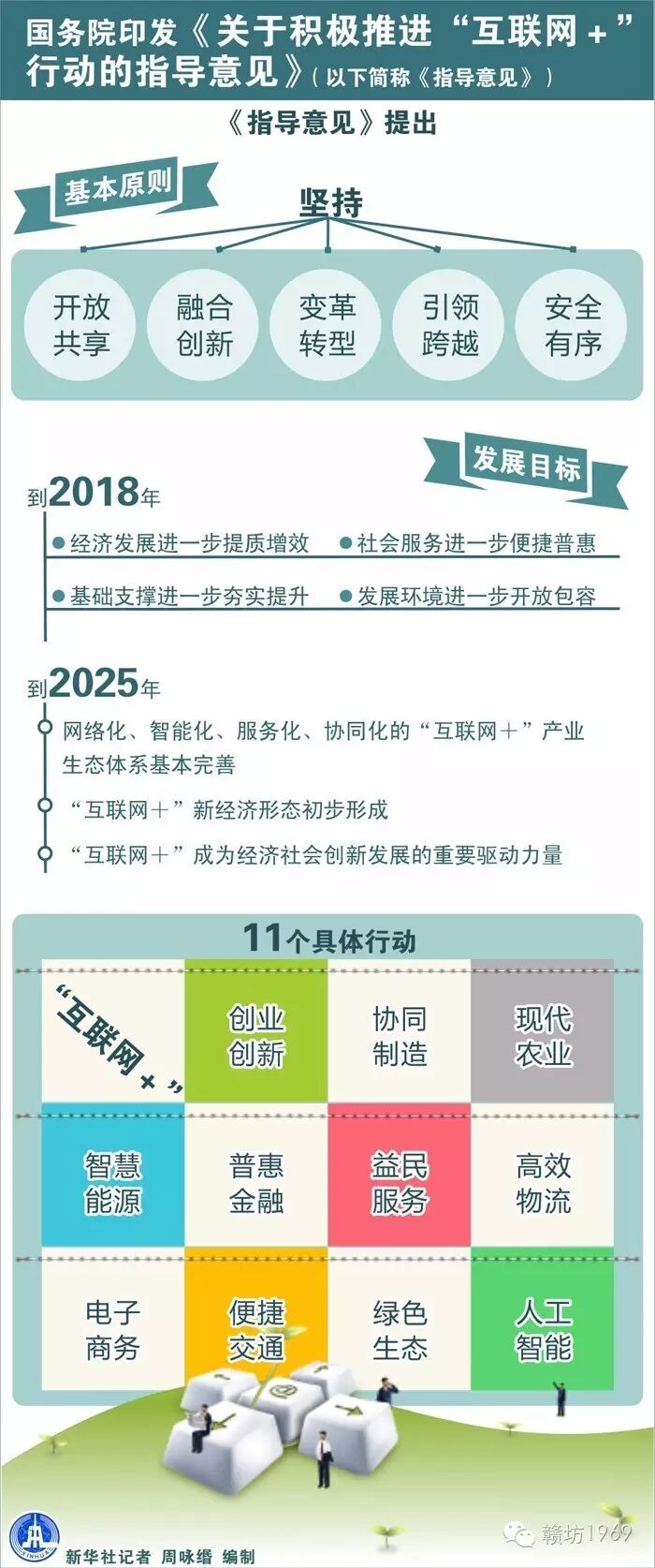 近年来,我国在互联网技术、产业、应用以及跨界融合等方面取得了积极进展,已具备加快推进“互联网+”发展的坚实基础,但也存在传统企业运用互联网的意识和能力不足、互联网企业对传统产业理解不够深入、新业态发展面临体制机制障碍、跨界融合型人才严重匮乏等问题,亟待加以解决。为加快推动互联网与各领域深入融合和创新发展,充分发挥“互联网+”对稳增长、促改革、调结构、惠民生、防风险的重要作用,现就积极推进“互联网+”行动提出以下意见。
