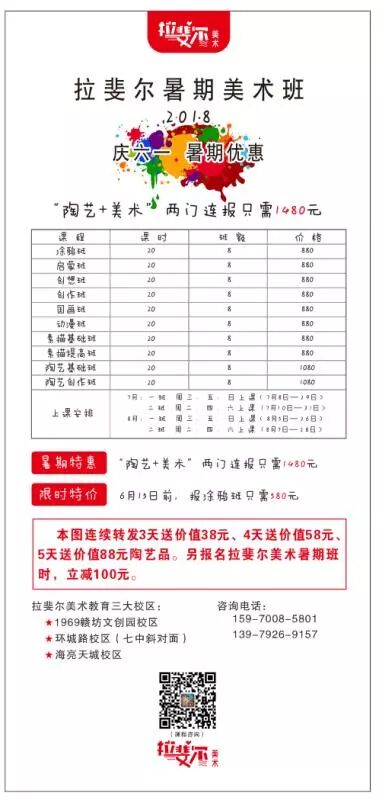 暑期优惠:陶艺+美术,两门连报只需1480元