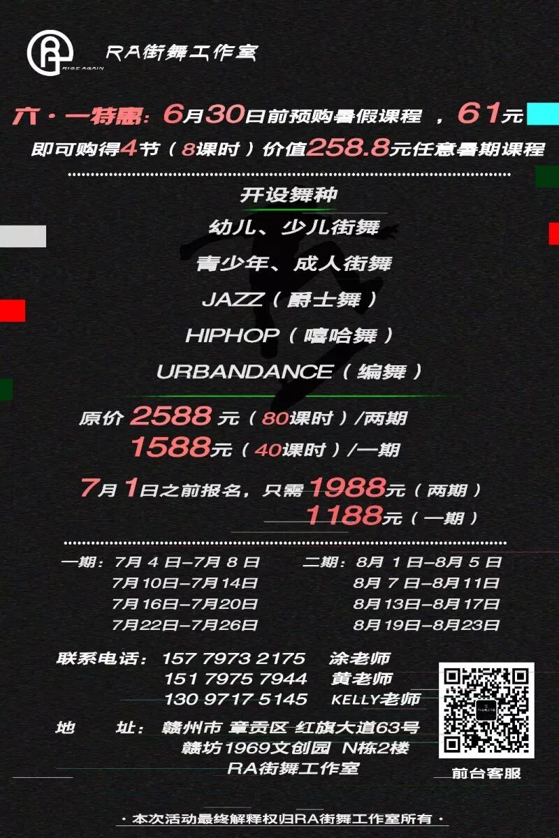 六一,称得上是孩子的第二个生日,也是TA童年快乐瞬间的重要组成部分。这个六一来赣坊,你不仅可以在暑期来临前,用特价为TA报个街舞、模特走秀或美术培训班,也可以在儿童节的假日两天,带TA体验赣坊各式各样的吃喝玩乐设施,而其优惠也是前所未有的。下面小坊为你整理部分优惠: