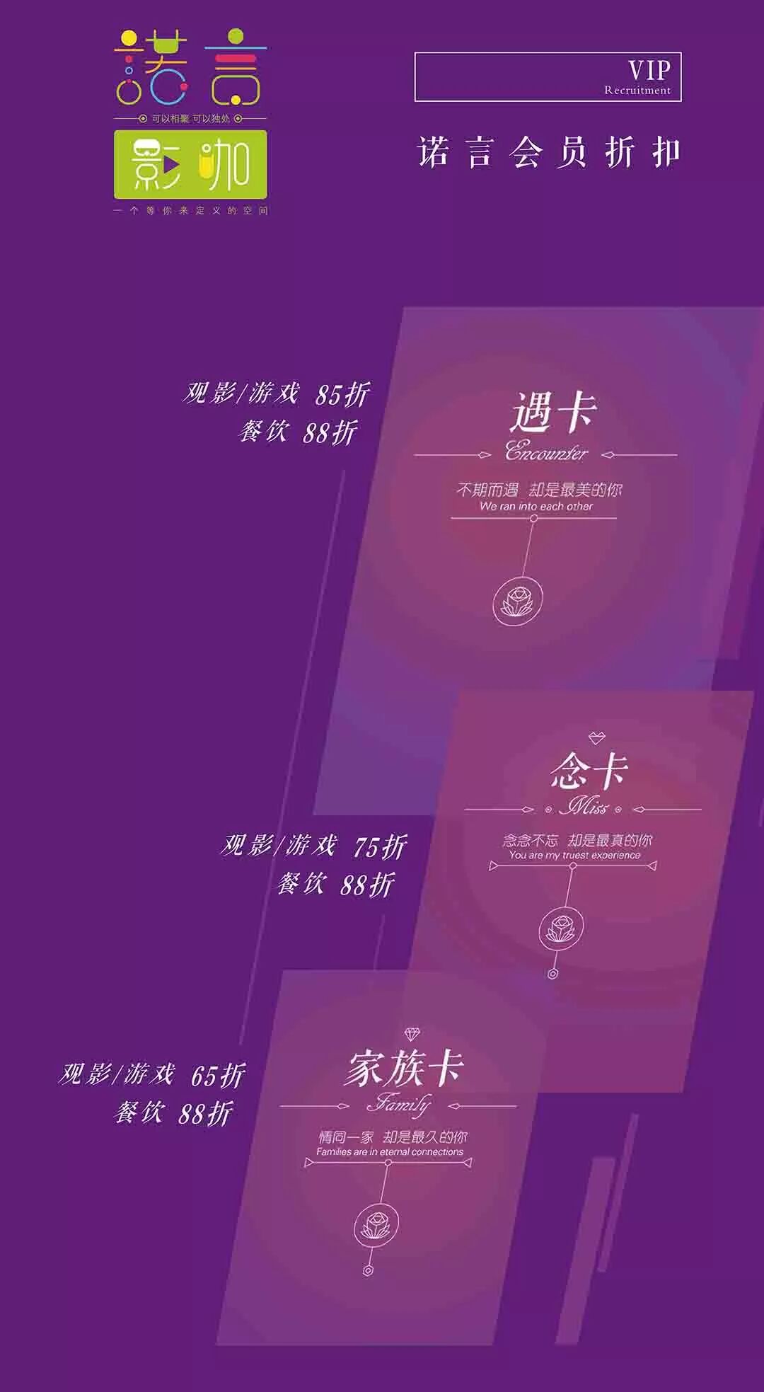 关注「诺言影咖」微信公众号,回复"开业大吉",根据系统提示的规则,就有机会获得8张"诺言影咖价值500元的小聚卡"。