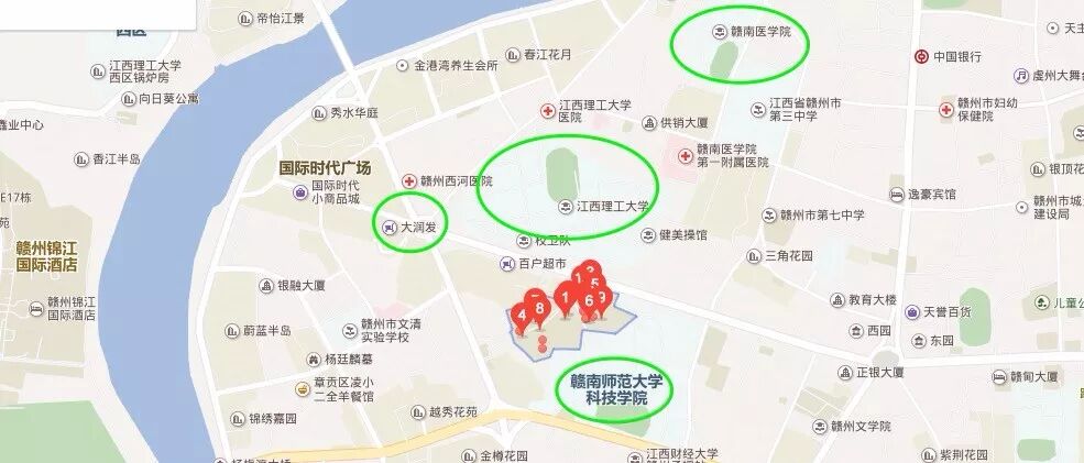 靠近:大润发、江西理工大学、赣南师范大学科技学院、赣南医学院