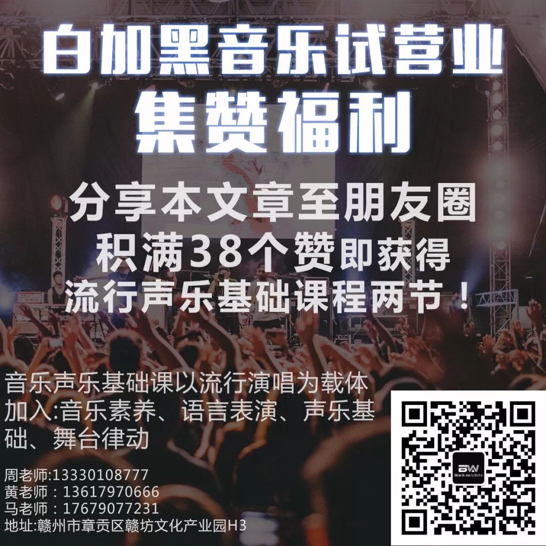 白加黑(BW)音乐,致力于为赣州打造出一家专业的流行唱法及舞台表演培训的机构,旨为赣州的歌唱事业提供良好的培训服务,打造出赣州流行音乐领域的优秀人才,成为本土的音乐品牌!