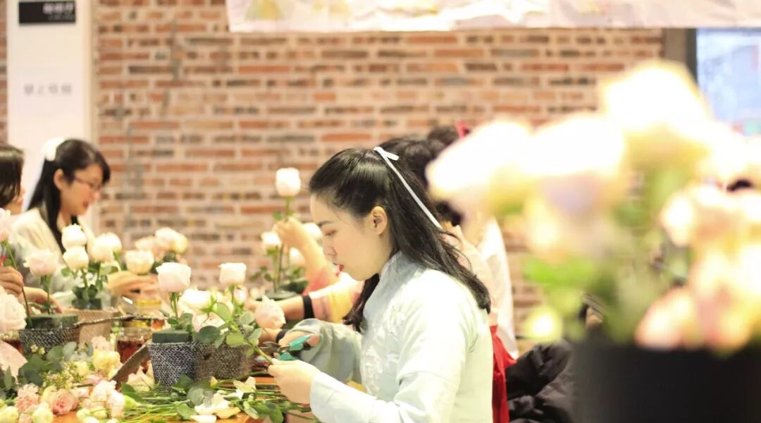 时值女神节,赣坊1969商户素溪花园与中海地产联合在青创公社举办了“女神节古典花艺”活动。下午四点,来自中海地产的小仙女们,在素溪花园曾妮老师的指导下,摘、剪、插,一朵朵鲜花在素手修饰之下,变身成一盆盆微景观,玉立于桌面,吐纳芬芳。