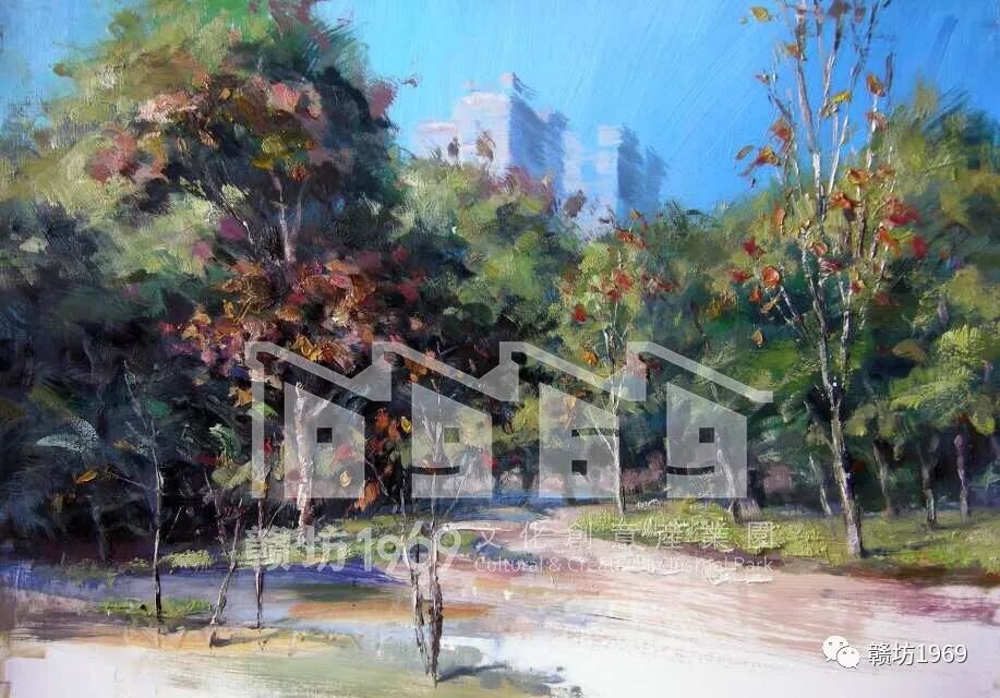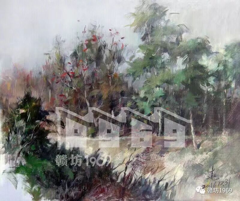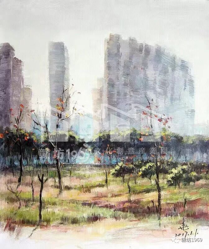 在赣州,廖老师也经常到各处去写生,画室里存放了很多的风景油画,曾有相关单位的朋友邀请他做作品展,被廖老师委婉回绝了。在他看来,让绘画成为个人纯粹的爱好就好了。前段时间有同学在市里办了画展,收获一片赞叹。有朋友便揶揄道:”你同学都办画展了,你不羡慕呐?”廖老师淡淡的答道:“他是繁花,而我是地瓜,不过,有时地瓜是可以充饥的!”