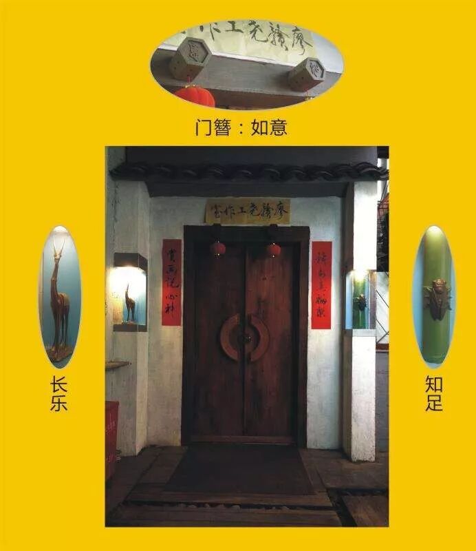 廖老师的工作室在赣坊里特别的不显眼,它位于赣坊唯一一个地下空间内,从地上一个延伸的楼梯口下楼,一副旋转楼梯将空间隔成两半,左侧是画室,门上“廖赣尧工作室”门匾是那种复古样式的,右侧则是待客室,颇具闹中取静之意味。