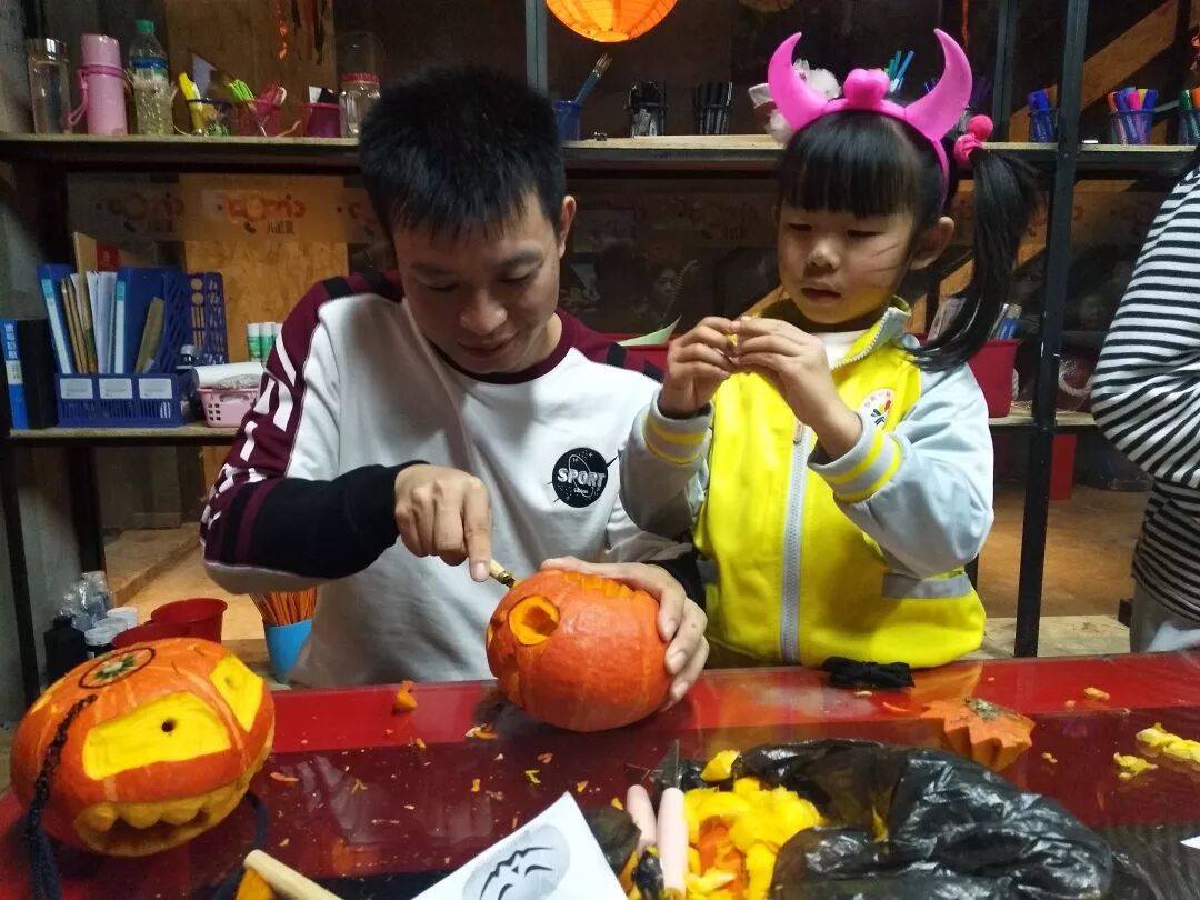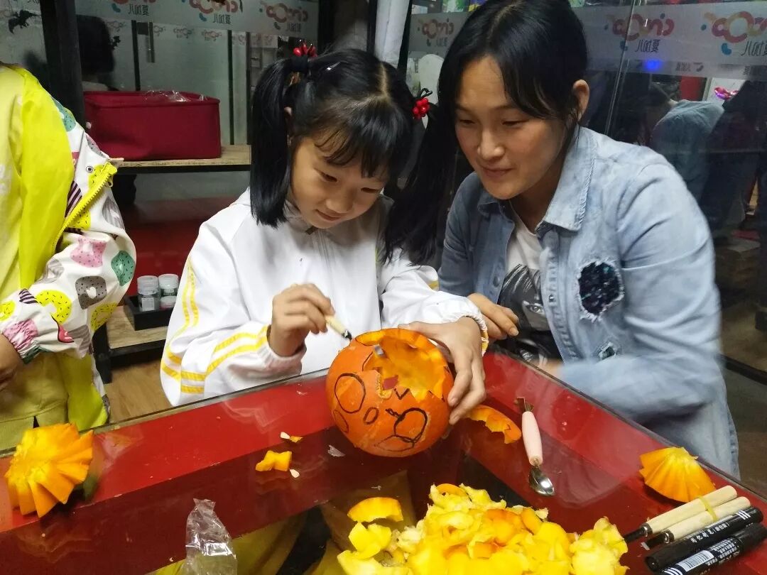 亲子专属项目DIY南瓜灯,小朋友自己动手体验做南瓜灯的乐趣,玩得可开心了!