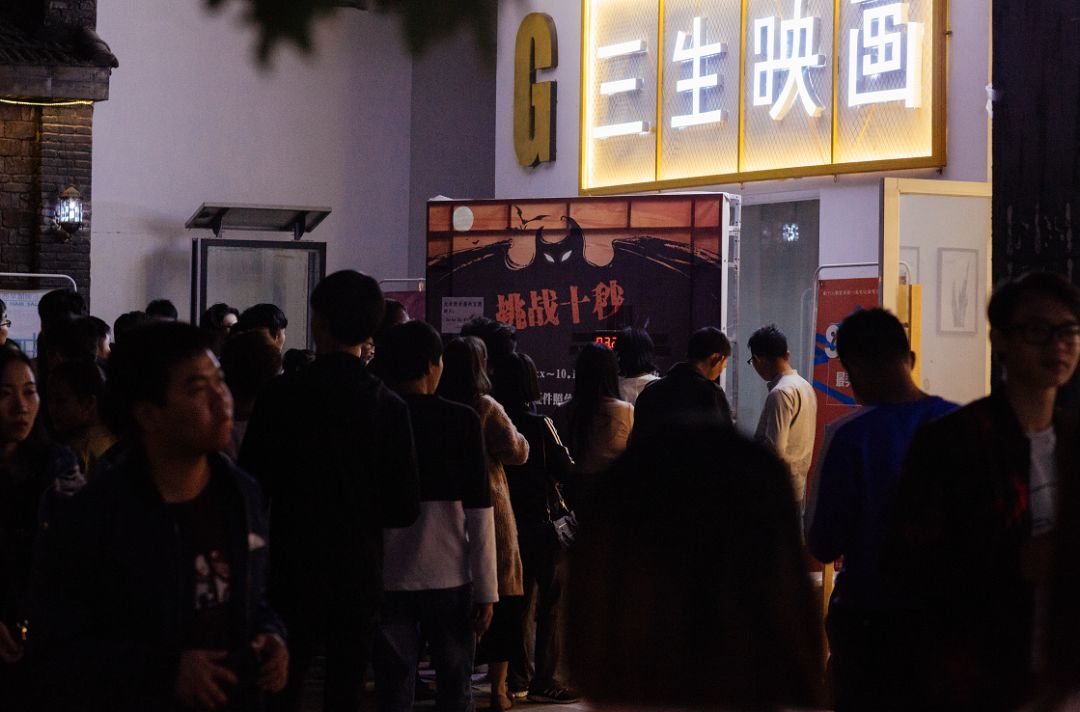 鬼屋入口排队检票的人不多,也就几百号人的样子吧~