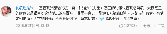 这是近期火热的电影《悲伤逆流成河》的主题曲,影片主讲校园霸凌事件,人性的黑暗压得观众透不过气来,但张韶涵的歌,仍然传达出世界黑暗,我要抓住光亮的正能量啊。