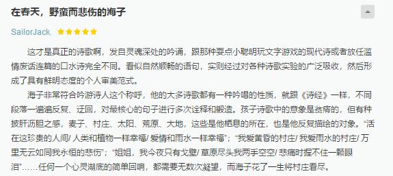 莫名和《孩子们的诗》同音,说起现代诗歌,一定会浮现一个名字——海子,他是一个天才诗人,也是一个现象级诗人。十五岁考入北京大学,十九岁进入中国政法大学哲学教研室工作,二十五岁卧轨自杀。所有文学成就在二十五岁以前完成。所有天真,多情,深沉,大气磅礴的诗句都在二十五岁以前完成。这以后,他就成了民族记忆,几乎代言一整个时代,那个还有诗歌的年代。