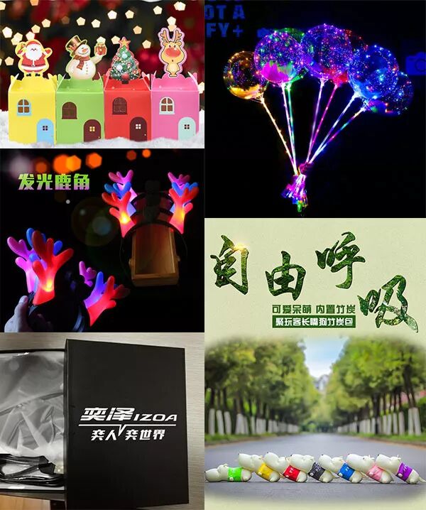 平安果、车载炭包卡通玩偶、发光气球、充电宝