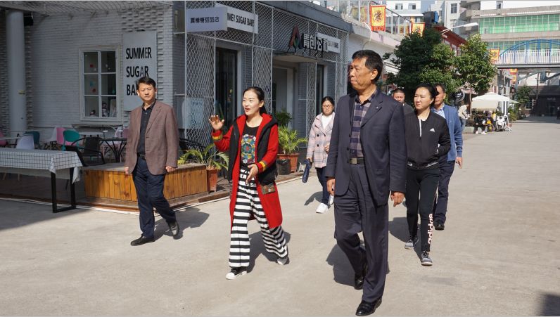随后焦峰同志一行参观了整个园区,在参观过程中园区曾主任向焦峰同志一行详细介绍了园区的功能分布及园区的特色亮点。焦峰同志一行不时走进商家,了解商家经营情况。