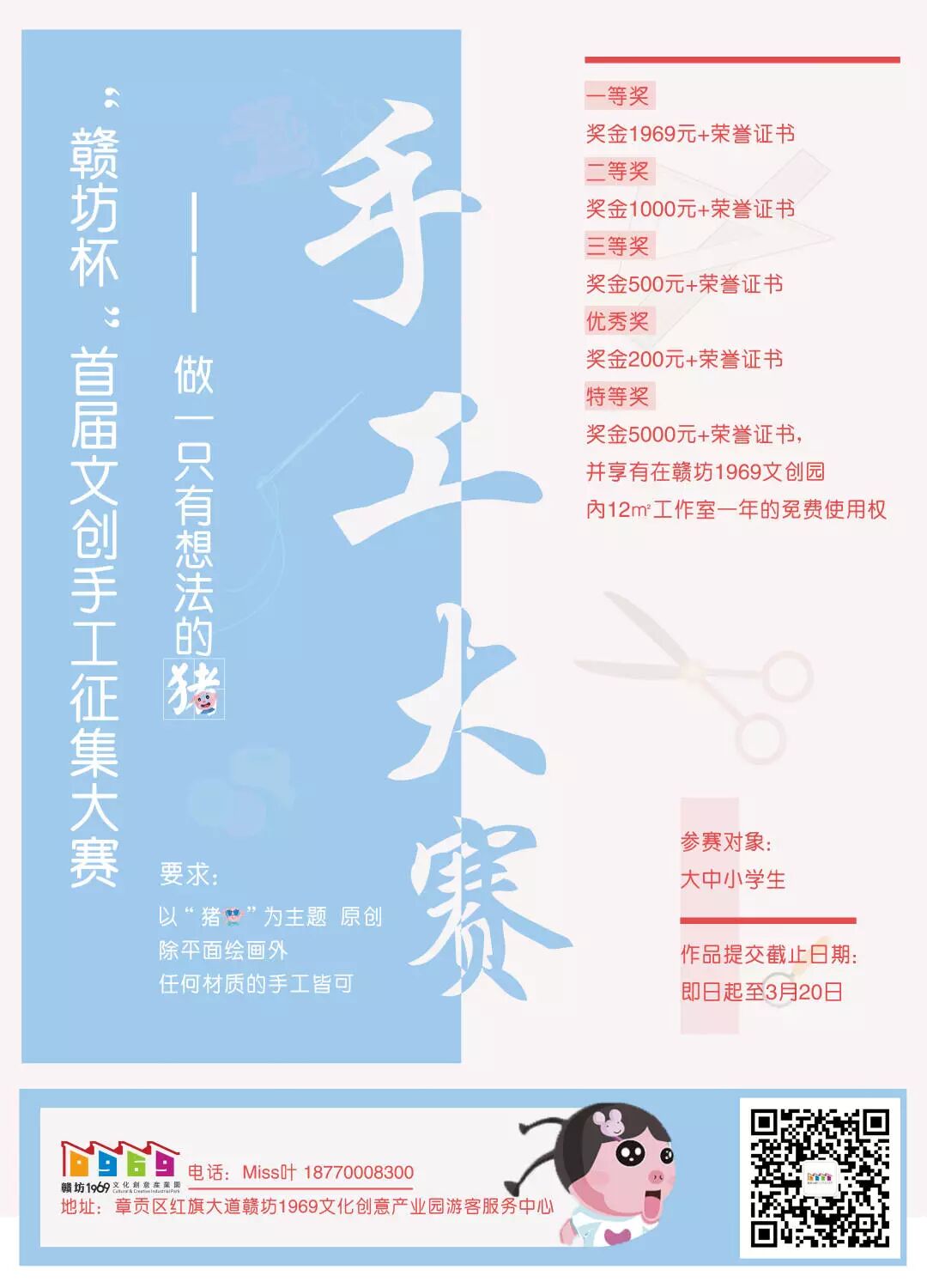 2、参赛作品题材包括且不限于:剪纸、刺绣、竹编、雕刻、首饰、泥塑、植物造型、珠宝设计、皮具、木作等除平面绘画外的任何材质的手工改装或制作,外型与功能不限。