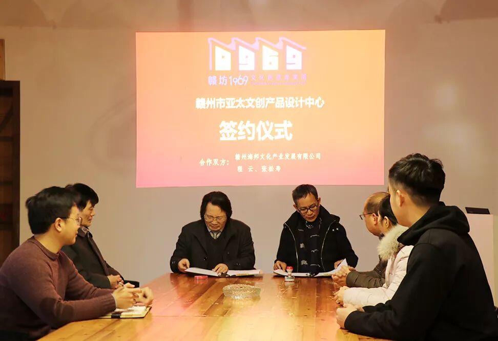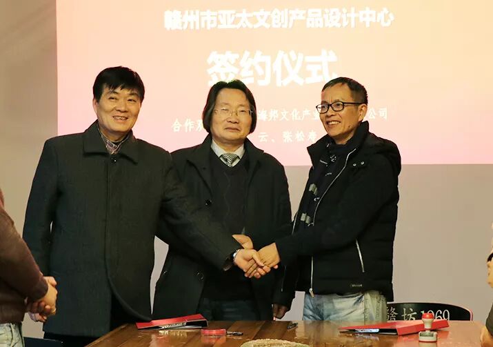 2019年2月23日,赣州市亚太文创产品设计中心总经理齐盛达与知名工艺美术大师程云教授、张松寿先生举行项目签约仪式。