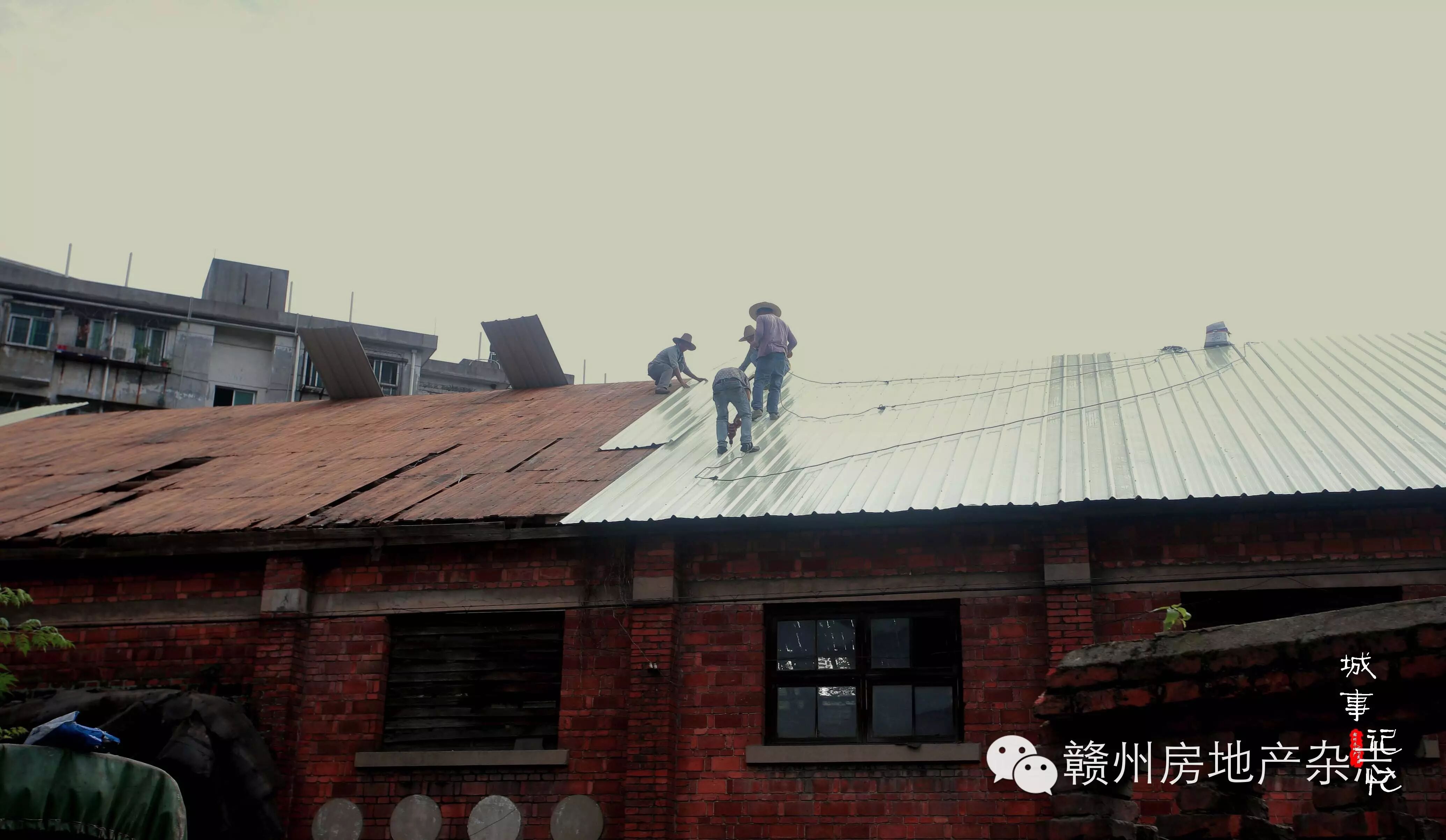 几名中年男子在阴天躲过炎热的太阳,抓紧时间赶工修葺破损的屋顶。古老的红砖房修了又补,却依旧是他们心中最温暖的港湾。