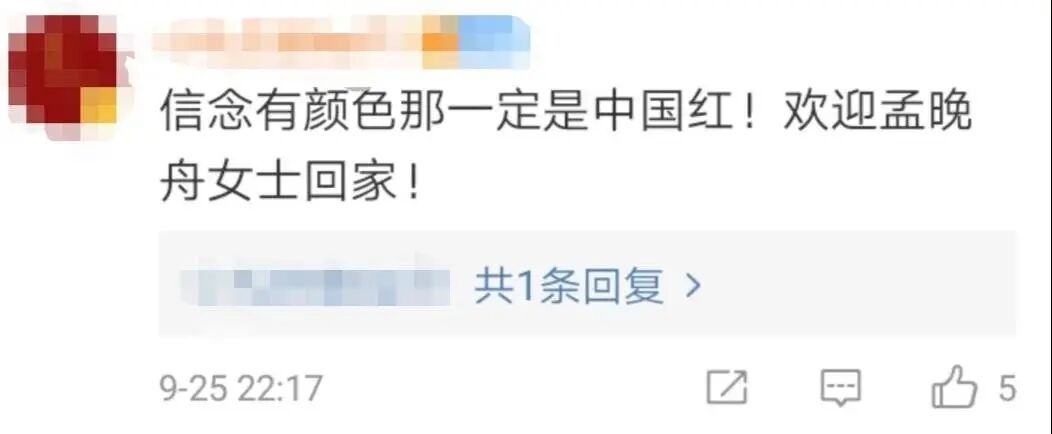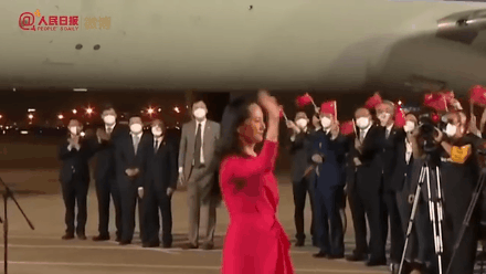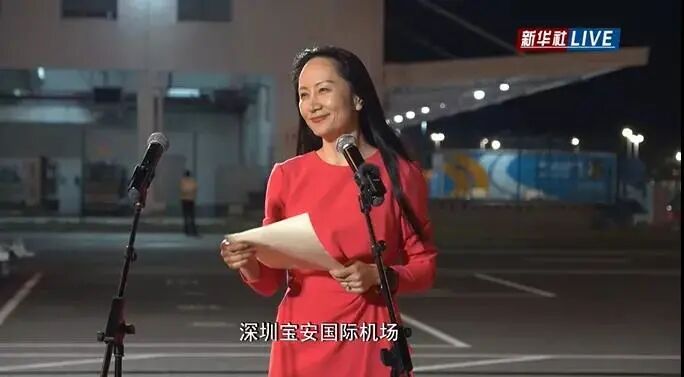 9月25日晚,孟晚舟乘坐的包机抵达深圳宝安国际机场。舱门打开,孟晚舟走出机舱,向在场人群挥手致意。孟晚舟一袭红裙,和机身上的五星红旗一样绚丽夺目。