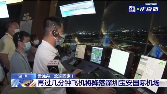 机场塔台工作人员温暖喊话:这里是中国深圳宝安机场,祖国永远是你最强大的依靠,孟晚舟女士欢迎归来!